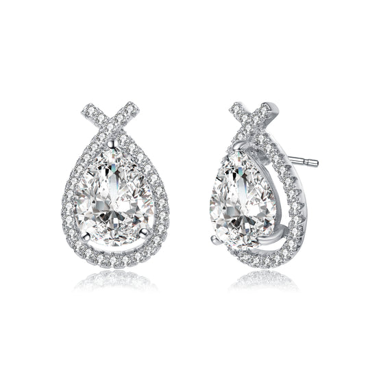 Classy white gold plated oval drop earrings featuring clear cubic zirconia for a timeless and elegant touch