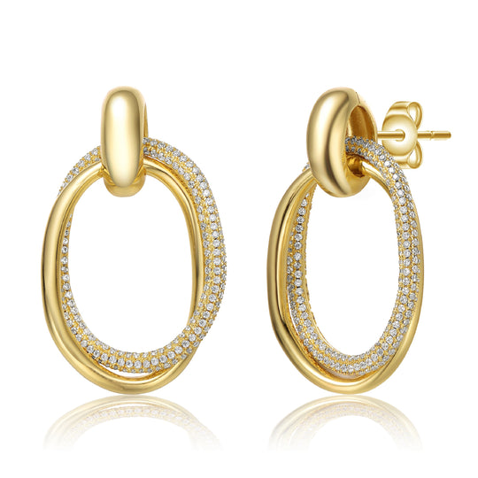 Elegant 14K Gold Plated Drop Earrings Adorned with Dazzling Cubic Zirconia for a Classic and Refined Look