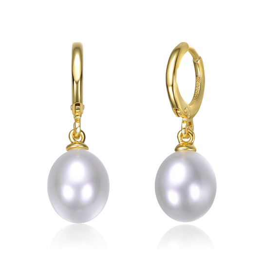 Elegant 14K Yellow Gold Plated Drop Earrings Featuring Luminous Simulated Pearls for a Timeless and Sophisticated Look