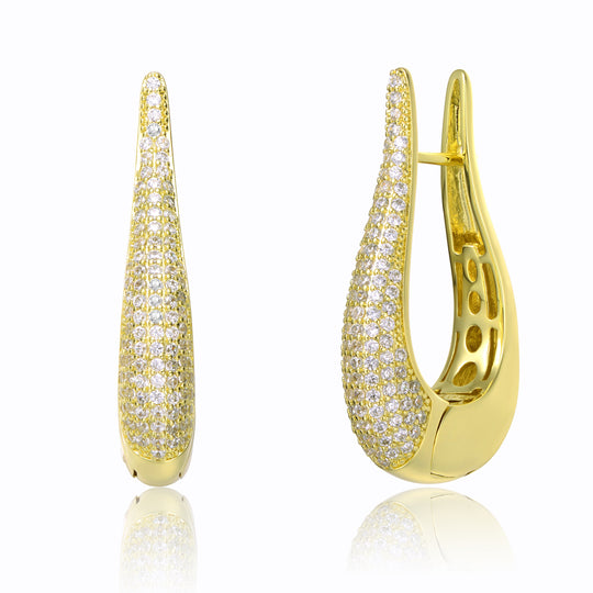 Elegant 14K Yellow Gold Plated Oblong Oval Raindrop Hoop Earrings Adorned with Sparkling Cubic Zirconia for a Sophisticated and Stylish Look