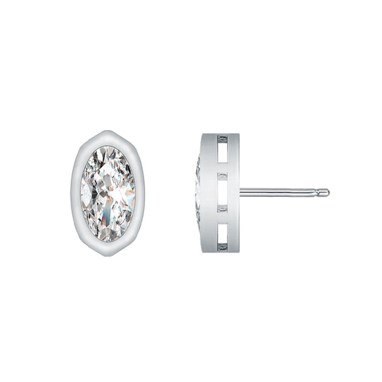 Elegant Oval White Gold Plated Stud Earrings Featuring Clear Cubic Zirconia for a Dazzling and Refined Look
