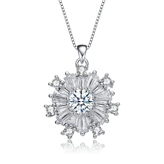 Elegant flower-shped cubic zirconia pendant neckalce, perfect for adding a touch of sophistication and timeless beauty to any outfit