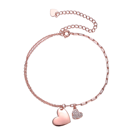 Marvelous 18K Gold Plated Cubic Zirconia Adjustable Bracelet. This bracelet features interesting design that is made out of two types of heart charms which change alternately and two types of chain. One charm is made out...Regular price From $115.98Quick view -
