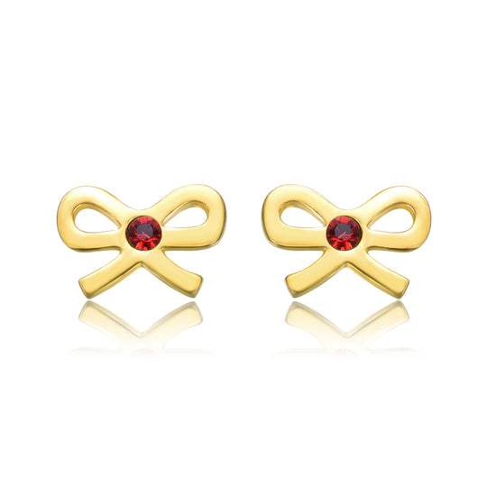 Guili Elegant 14K gold plated red crystal ribbon bow tie stud earrings - Sparkling, stylish design perfect for adding a touch of glamour to any outfit