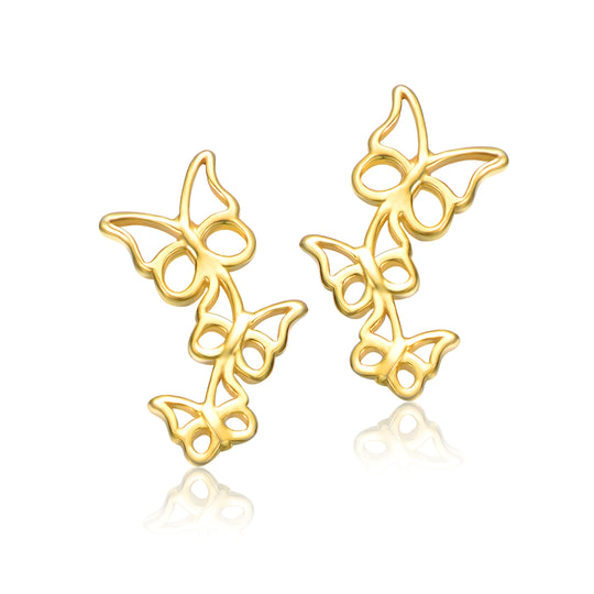 Guili Elegant 14k Gold Plated Filigree Butterfly Trio Stud Earrings – Delicate, Lightweight Design, Perfect for Everyday Wear or Special Occasions