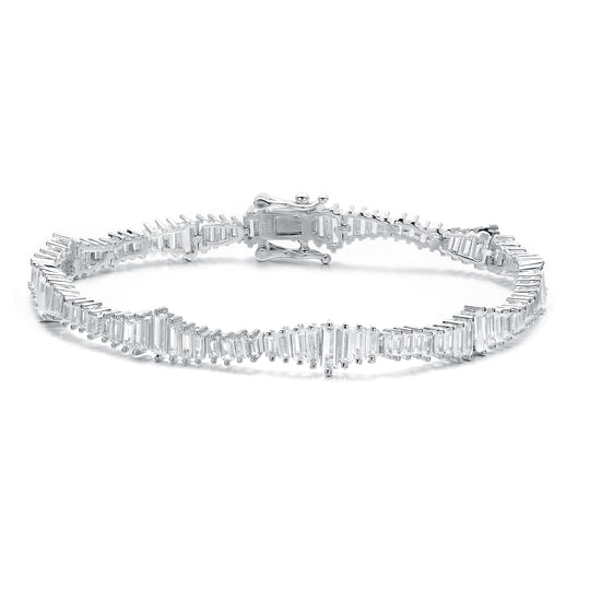 Elegant Rhodium Plated Clear Cubic Zirconia Tennis Bracelet. This beautiful bracelet features interesting design made out of clear baguette cubic zirconia stones graduating in sizes, the largest in the center and smaller on the sides, set...Regular price $119.20Quick view -