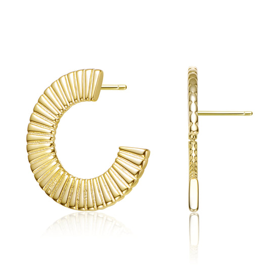 Sophisticated 14k yellow gold plated ribbed open circle drop earrings featuring a stylish and modern design for an elegant and timeless look