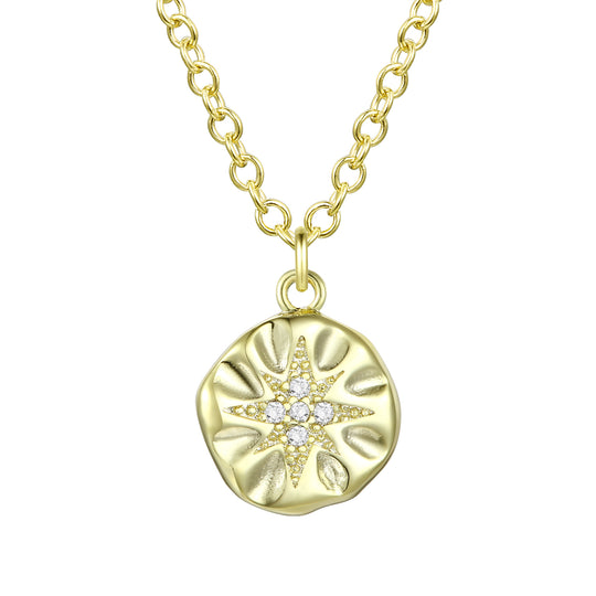Sophisticated 14K gold plated cubic zirconia pendant necklace with detailed engraved design for an elegant touch