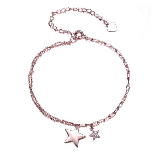Marvelous 18k Rose Gold Plated Cubic Zirconia Adjustable Bracelet teens. This bracelet features an interesting design that is made out of two types of star charms which change alternately and two types of chains. One charm...Regular price $77.98Quick view