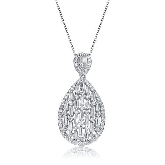 Stylish white gold plated necklace with cubic zirconia pear-shaped pendant, featuring elegant and sparkling design