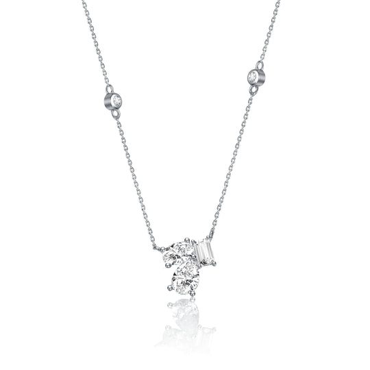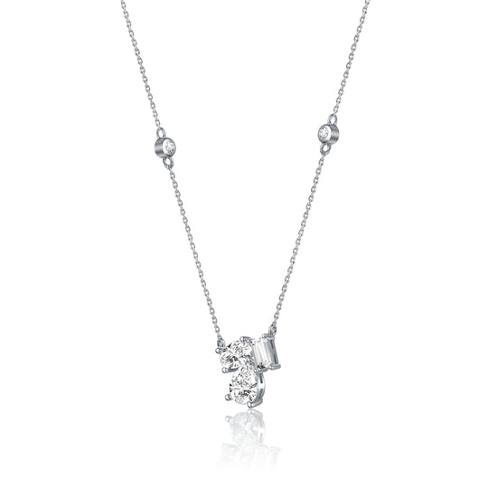 Stunning Sterling Silver Cluster Station Necklace with Brilliant Cubic Zirconia – A Sparkling and Elegant Statement Piece for Any Occasion