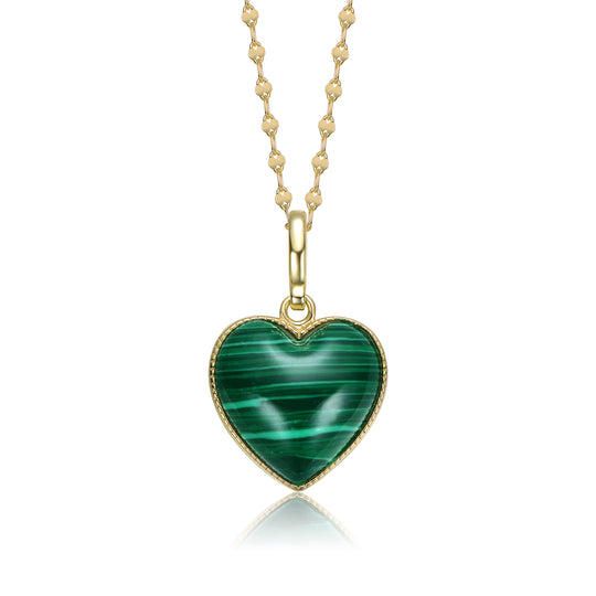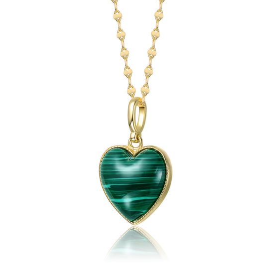 Elegant and timeless, this sterling silver pendant features a 14K gold plating and a stunning green heart-shaped stone. Its exquisite craftsmanship and vibrant color make it a perfect accessory for any occasion, adding a touch of...Regular price $69.00Quick view -
