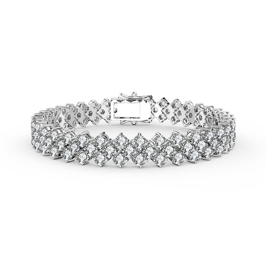 Very stylish White Gold Plated Three Row Bracelet. The Three Row Bracelet features clear round brilliant Simulated cubic zirconia in four-prong settings. Crafted of White Gold Plated, it is secured with a box clasp. Bracelet Width:...Regular price $139.98Quick view -