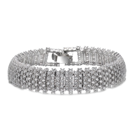 This White Gold-Plated Bracelet features three elegant rows of clear, sparkling Cubic Zirconia, adding a touch of timeless sophistication