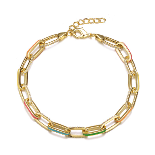 14k Yellow Gold-Plated Chain Bracelet with Vibrant Multi-Color Enamel Accents for a Bold and Elegant Touch