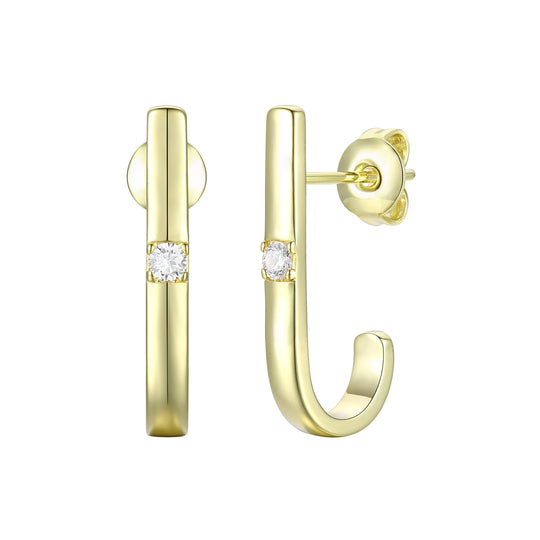 Sophisticated 14K yellow gold plated Cubic Zirconia Open Hoop Earrings. These earrings feature interesting "J" design that is made out of curved bar, accented with clear round cubic zirconia stone. Crafted with 14K Gold Plating and...Regular price $64.00Quick view -
