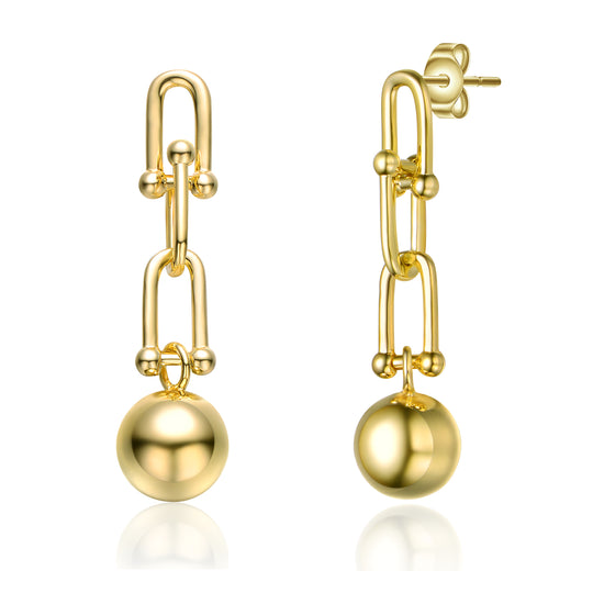 Chic 14K Yellow Gold Plated U-Shaped Link Chain Drop Earrings Featuring a Sleek Golden Ball for a Modern and Elegant Touch