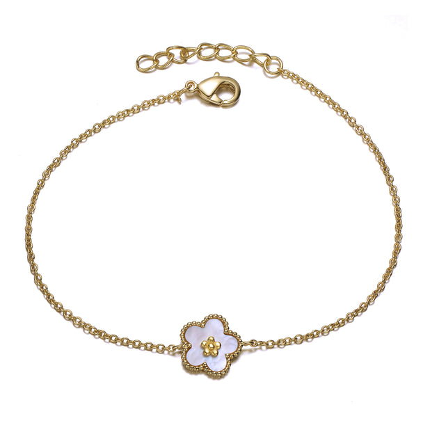 Elegant 14k Gold Plated Flower Bracelet for Girls and Teens
