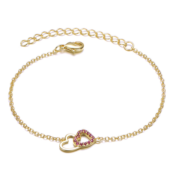 Kids 14k Gold Plated Red Heart Charm Bracelet