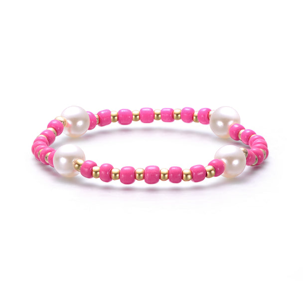 Kids 14k Gold Plated Multi-Color Beads Bracelet with Freshwater Pearls