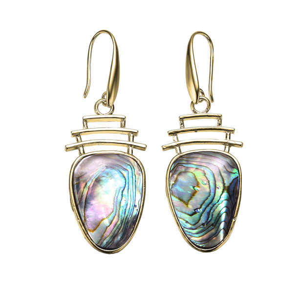 Sterling Silver 14K Gold Plated Abalone Pear Drop Hook Earrings