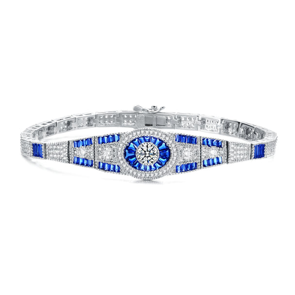 Rhodium Plated with Sapphire Cubic Zirconias Bracelet