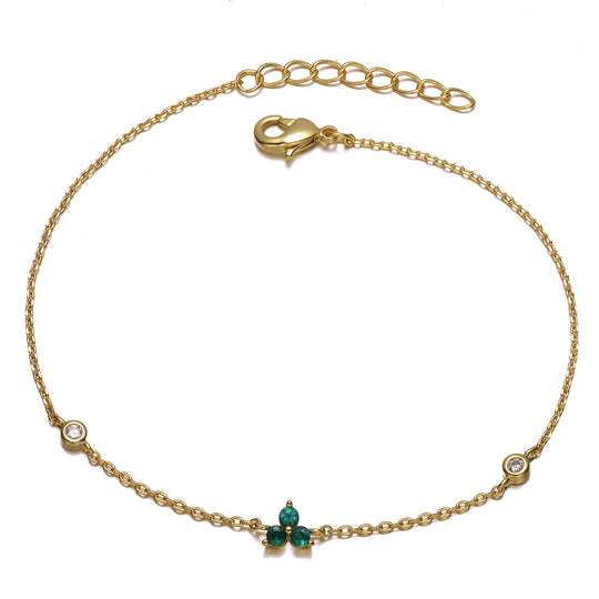 Add a touch of elegance to any occasion with this stunning 18k gold plated chain link bracelet, perfect for girls and teens. The bracelet features a cluster of three emerald green cubic zirconia stones set at...Regular price $74.00Quick view