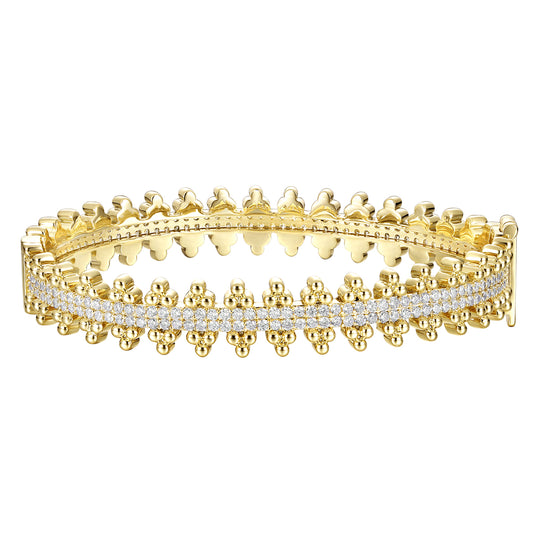 14k Gold Plated Cubic Zirconia Beaded Cluster Link Tennis Bracelet