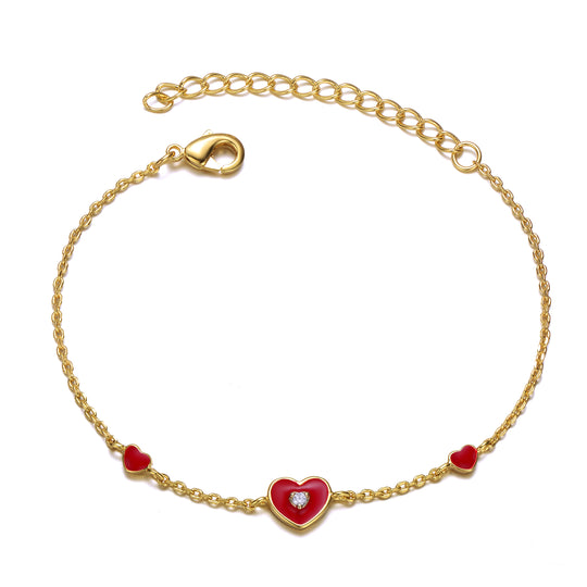 Kids 14k Gold Plated Red Heart Charm Bracelet