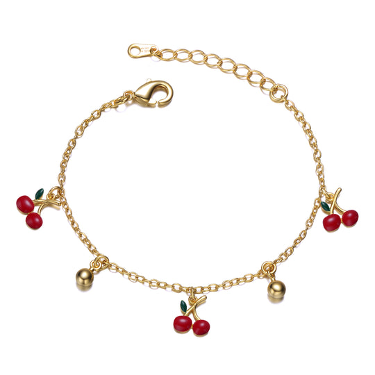 Kids 14k Gold Plated Red Cherry Charms Bracelet