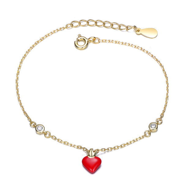 14K Gold Plated with Red Enamel Heart & Clear Cubic Zirconia Bracelet