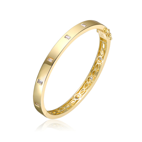 Sterling Silver 14K Gold Plated with Baguette Cubic Zirconia Bangle Bracelet