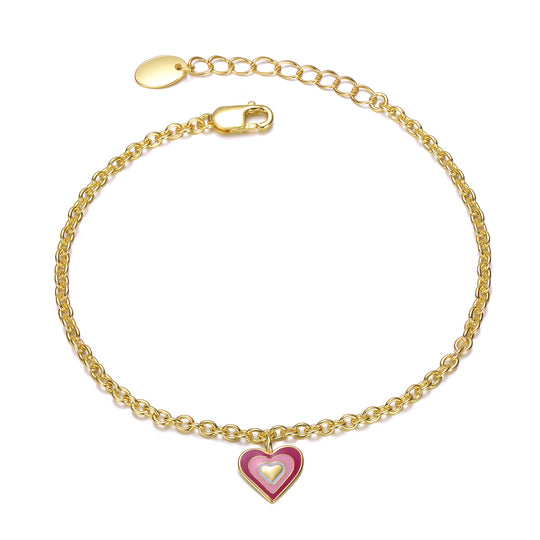 Sterling Silver 14K Gold Plated Multi Color Enamel Halo Heart Charm Bracelet for Kids and Teens