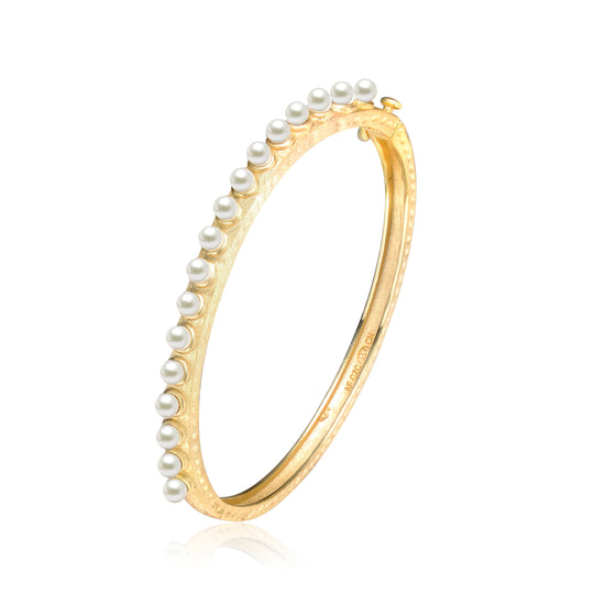 Enhance your elegance with this stunning Sterling Silver Bangle Bracelet, beautifully plated with 14K gold. The top half of the bangle is adorned with delicate 3mm beads, available in either vibrant turquoise pearls or classic white...Regular price $219.00Quick view -