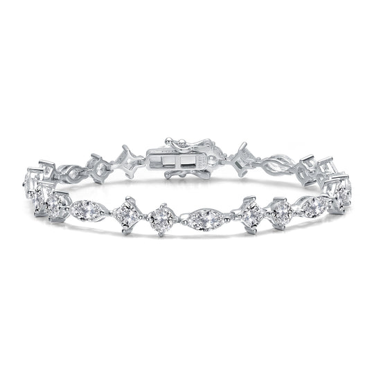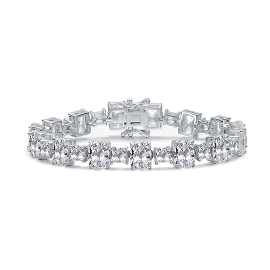 Sterling Silver White Gold Plated with Clear Cubic Zirconia Symmetrical Design Statement Bracelet