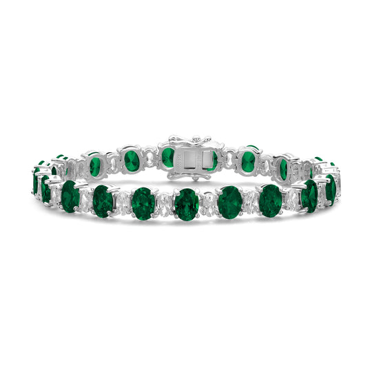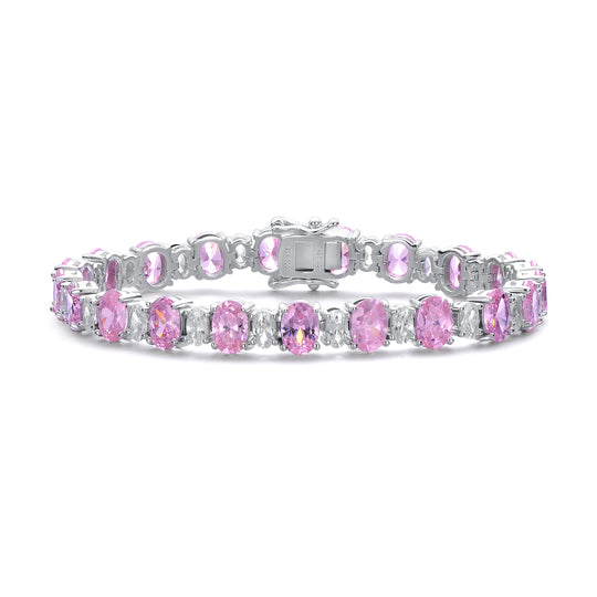 Sterling Silver with Oval White, emerald, pink, or sapphire Cubic Zirconia Tennis Bracelet