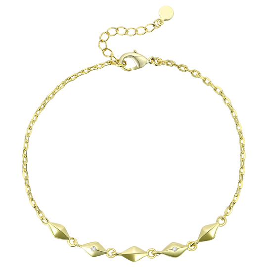 Stylish 14k Yellow Gold Plated Adjustable Bracelet for teens. This bracelet features a simple design: octahedron pyramid shapes made out of solid metal in the center, some accented with clear round cubic zirconia stones, connected to...Regular price $109.98Quick view -