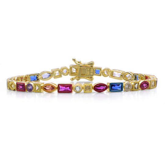14K Gold Plated Multi-Color Varied-Shape Tennis Bracelet