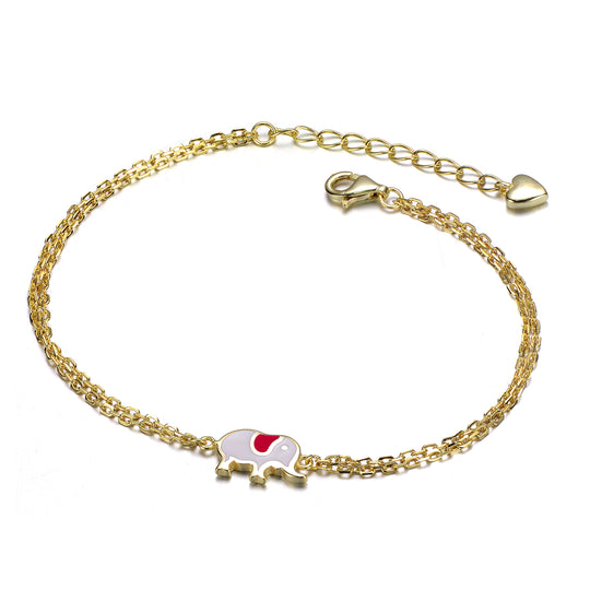 14K Gold Plated with Pink & Red Enamel Elephant & Heart Bracelet