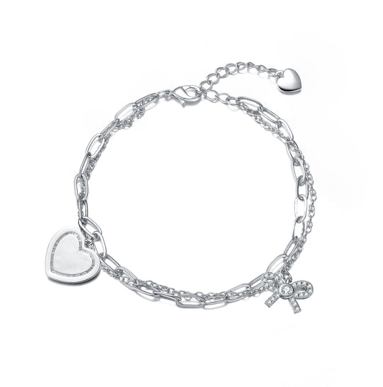 Kids Elegant Sterling Silver with Rhodium Plated Heart and Bow Tie Paper Clip Chain Bracelet. This design features two charms: one heart shaped and the other bow tie. The bow tie charm is paved with clear...Regular price $119.98Quick view -