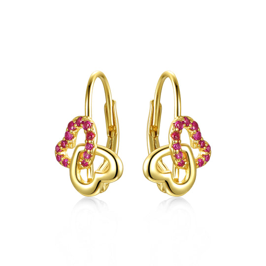 Guili Kids/Teen's Sterling Silver 14k Yellow Gold Plated with Ruby & Double Heart Halo Drop Leverback Earrings.