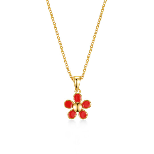 Guili 14k Yellow Gold Plated Red Enamel Blooming Flower Layering Necklace
