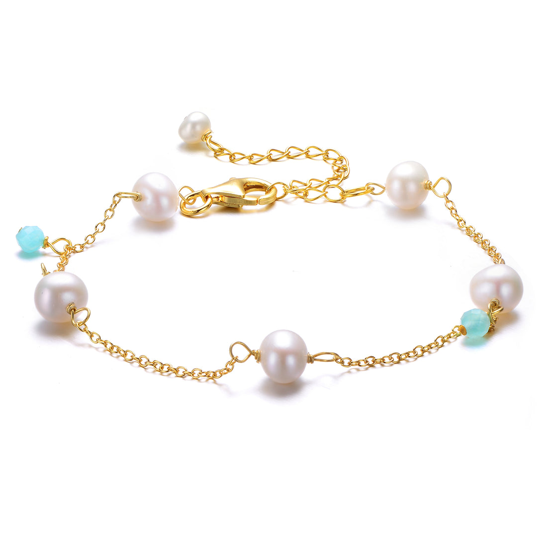 Elevate your style with our 14k Gold Plated Link Chain Bracelet, adorned with lustrous pearls spaced elegantly along the chain. Each pearl adds a touch of timeless grace, creating a sophisticated contrast against the polished gold-plated links. Secured with a reliable lobster clasp, this bracelet promises both beauty and durability. Perfect for any occasion, it’s a versatile addition to your jewelry collection.