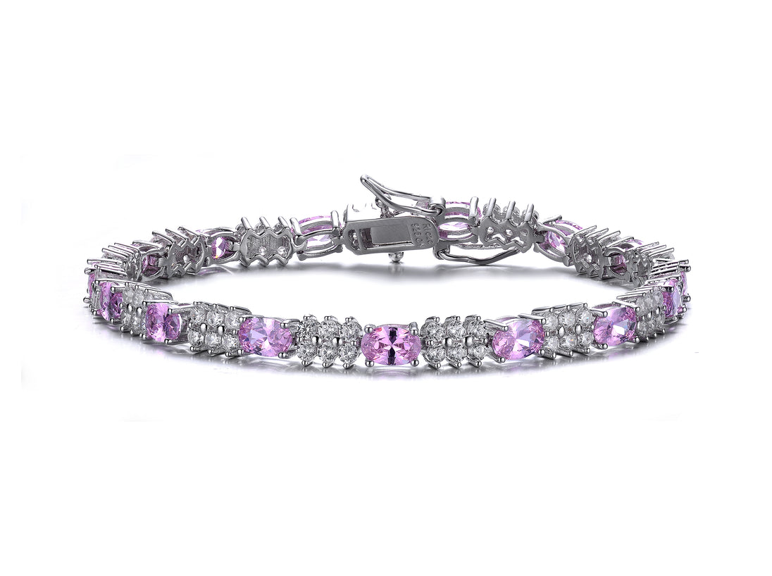 Go out in style with this gorgeous and delicate sterling silver design that is ideal for a night on the town. This piece features red stones that alternate with dazzling cubic zirconia and silver accents and secured with a delicate clasp closure.