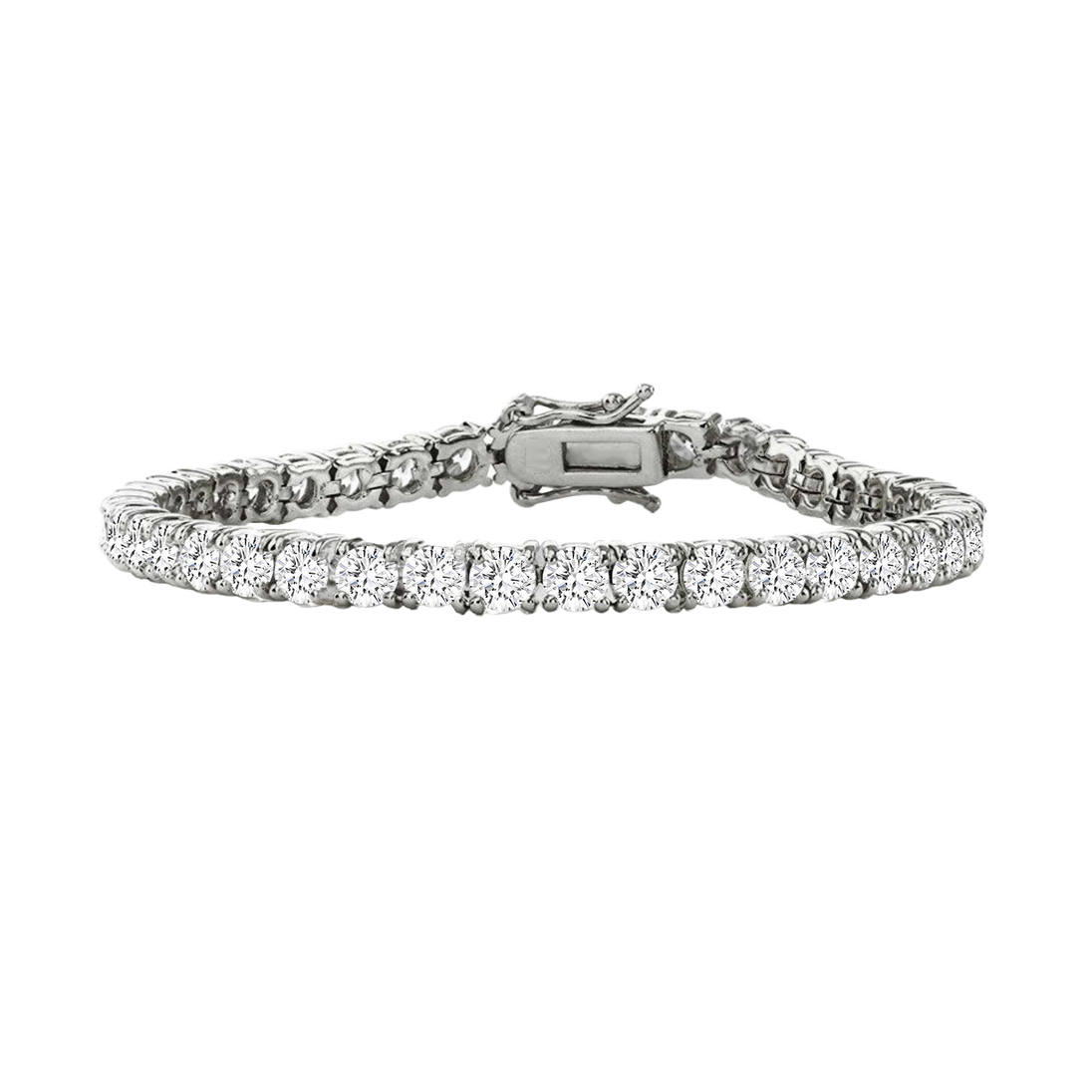 A timeless stone-encrusted bracelet with 5mm cubic zirconia. The large sparkling stones are complemented with the beautiful white gold plating. It is secured with a box clasp. The stones are carefully cut and polished to have a cohesive look. This beautiful tennis bracelet will surely add color to your outfit and elevate it.
